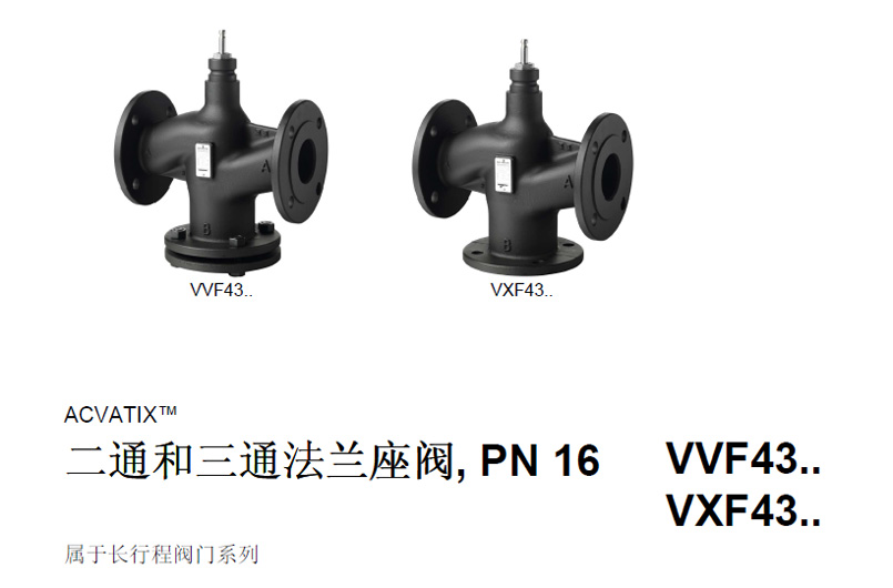 二通閥VVF43..可用于液體和蒸汽,但介質(zhì)不同,安裝方向不同;三通閥VXF43..只能用于液體,可用于合流或分流。