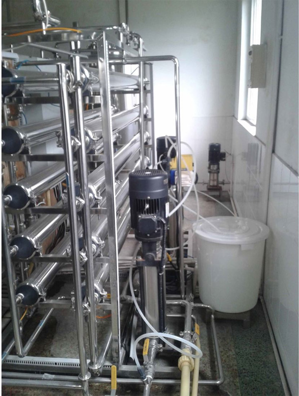 經(jīng)過預(yù)處理后合格的原水進入置于壓力容器內(nèi)的膜組件,水分子和極少量的小分子量有機物通過膜層,經(jīng)收集管道集中后,通往產(chǎn)水管再注入反滲透產(chǎn)水箱。反之不能通過的就經(jīng)由另一組收集管道集中后通往濃水排放管,排入反洗水箱中或排出系統(tǒng)之外。系統(tǒng)的進水、產(chǎn)水和濃水管道上都裝有一系列的控制閥門,監(jiān)控儀表及程控操作系統(tǒng),它們將保證設(shè)備能長期保質(zhì)、保量的系統(tǒng)化運行。