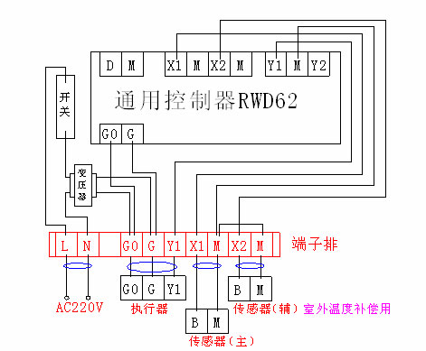5、注意執(zhí)行器信號線(Y/M)是由控制器輸出端接入,(Y1/M)而非控制器的輸入端(X1/M),更非傳感器端子(B/M)